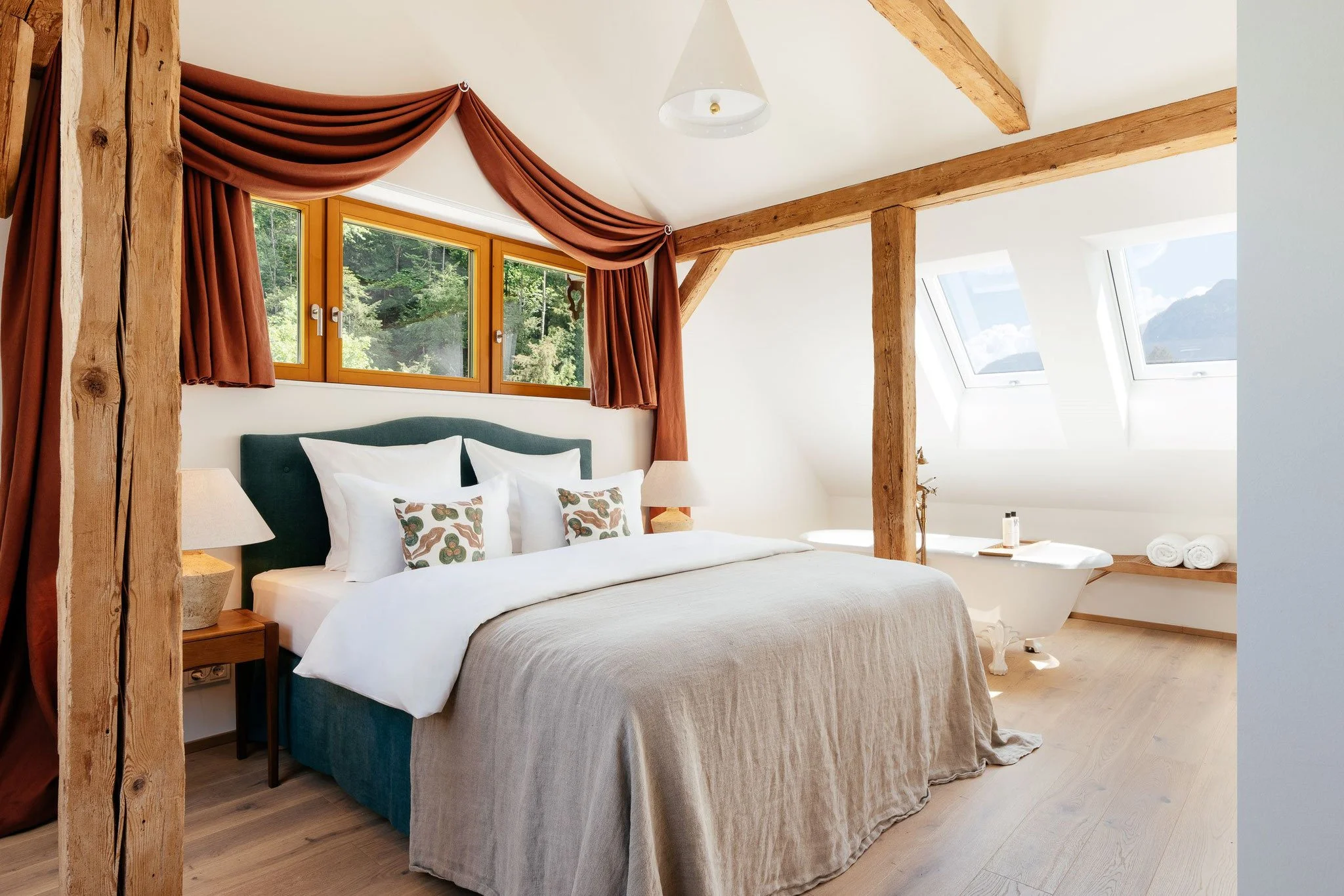 Nestled in the serene hills of the Salzkammergut, this women’s retreat is surrounded by untouched nature—forests, meadows, and sparkling streams that bring calm and clarity. Birds sing, deer wander quietly, and foxes or hares may appear in the soft morning light, while majestic mountains invite mindful walks and deep breaths of fresh alpine air.